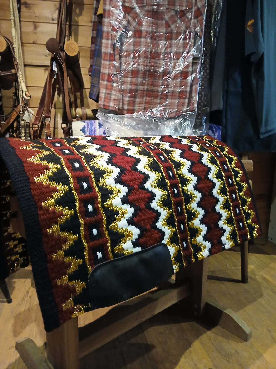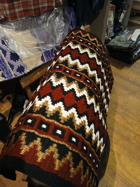 Red, White, Gold and Black Patterned Show Blanket