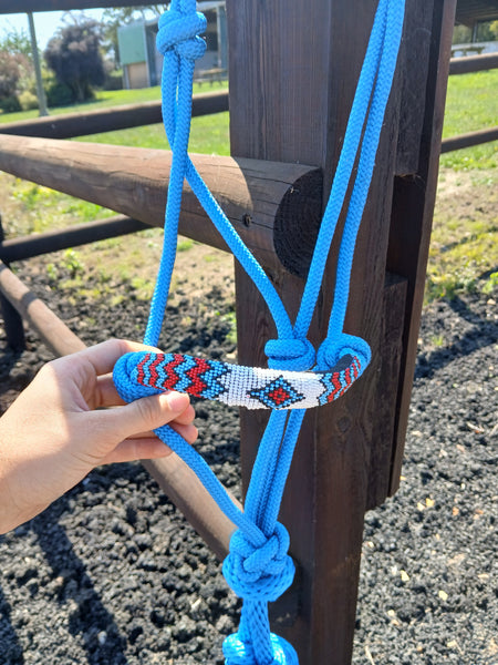 Light blue Halter and Lead Rope with coloured beaded noseband