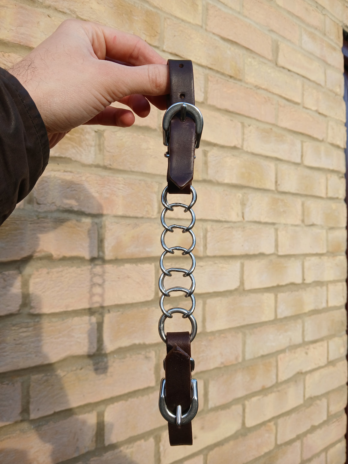 Dark brown western curb chain made from high quality dark leather and an adjustable buckle on each end.