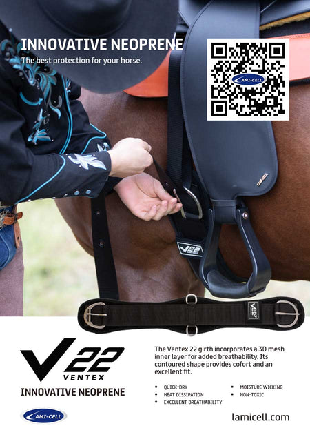 The Lami-Cell V22 Short Girth offers a great deal of freedom of movement to the horse's forelegs and optimal pressure distribution over the entire girth thanks to :
