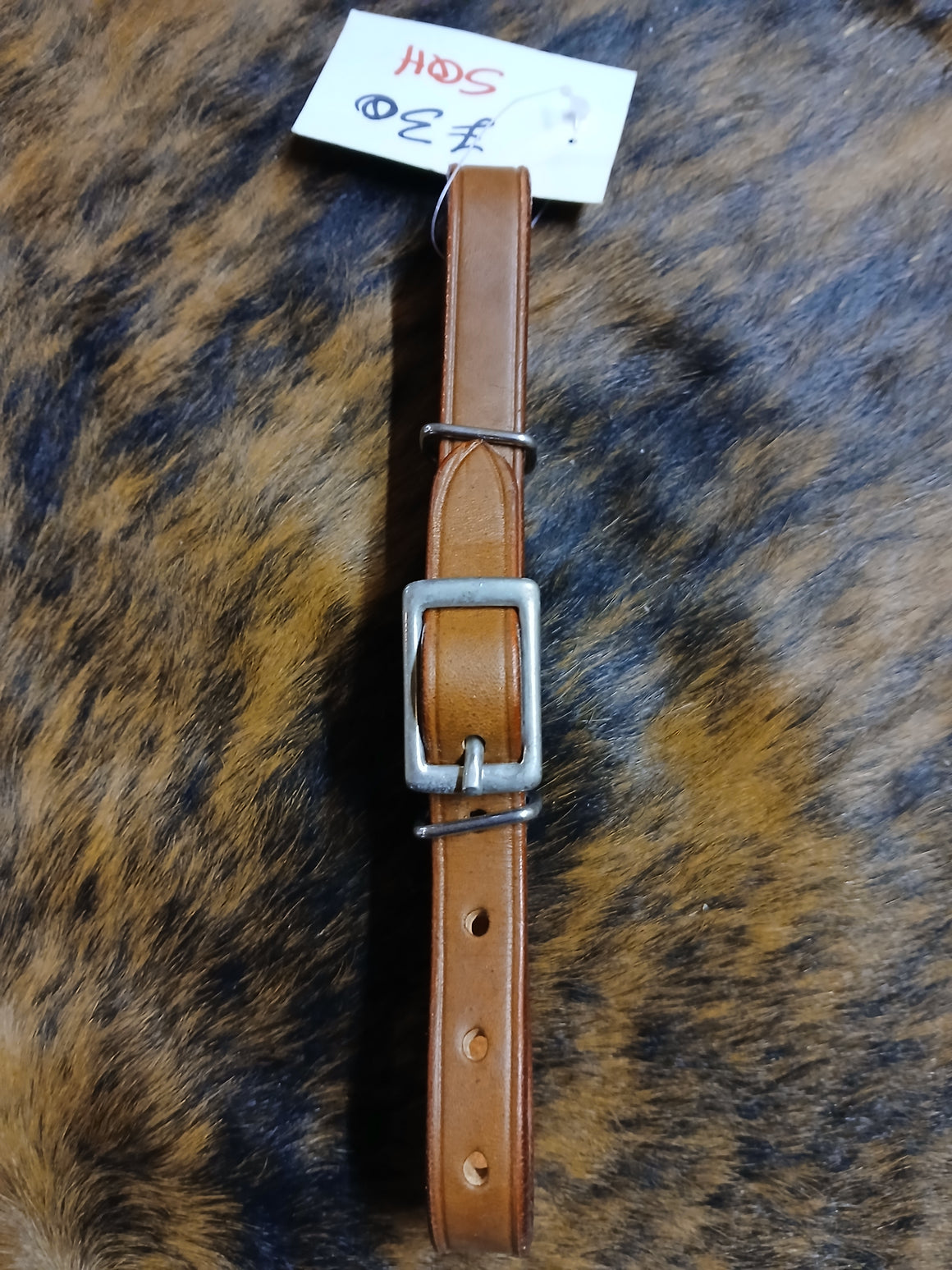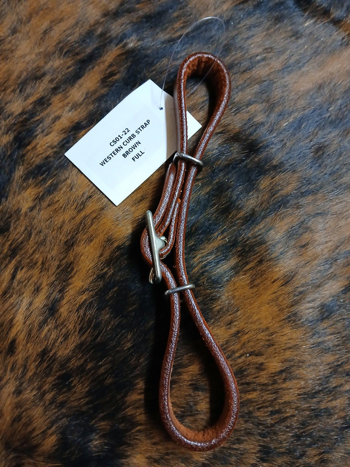 Dark brown western curb strap made from high quality dark leather and an adjustable buckle on each end.