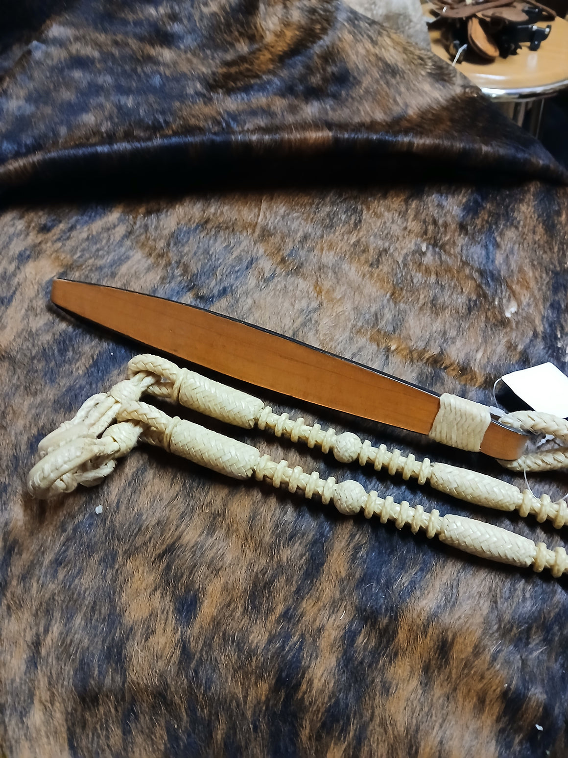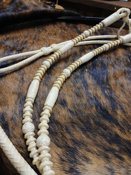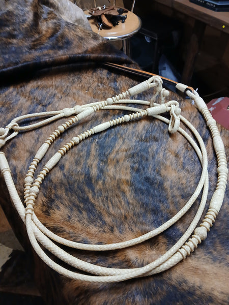 Natural Rawhide Romal Reins with Plain Leather Popper. 12 Plait Rawhide