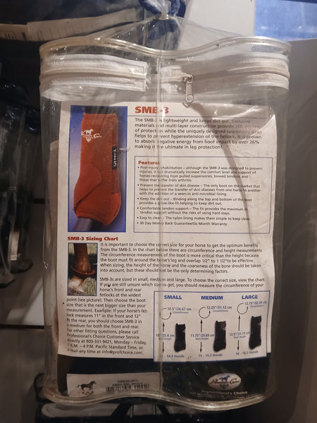 The SMB3 is a hybrid between the two best selling protective boots: the original SMB II and the VenTECH SMB Elite. The exterior is constructed with Professionals Choice signature limestone-based neoprene. Together with an Ultra Shock lining, the SMB3 safeguards the cannon bone, tendons and soft tissue, while absorbing energy from hoof impact.